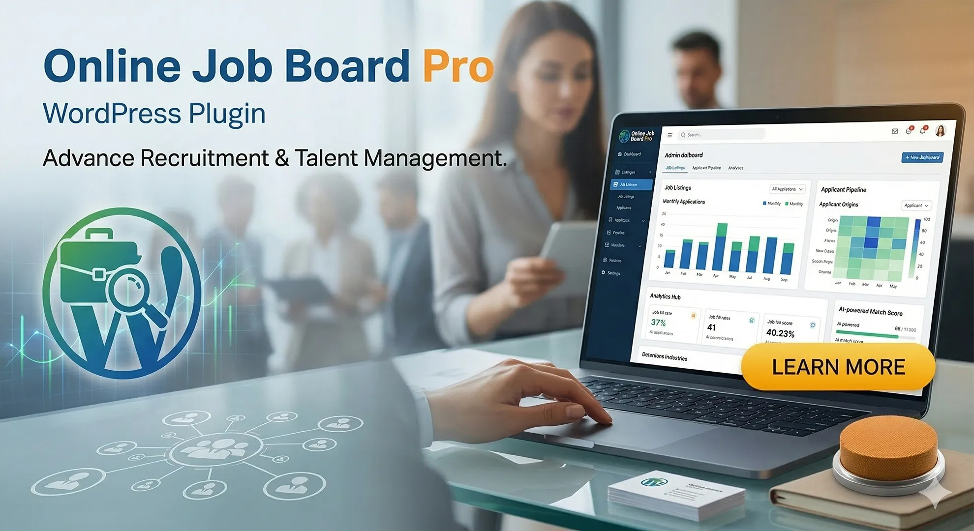 Online Job Board Pro lets businesses post unlimited jobs, manage listings with custom layouts, and showcase them in a responsive design. Effortlessly embed job details...